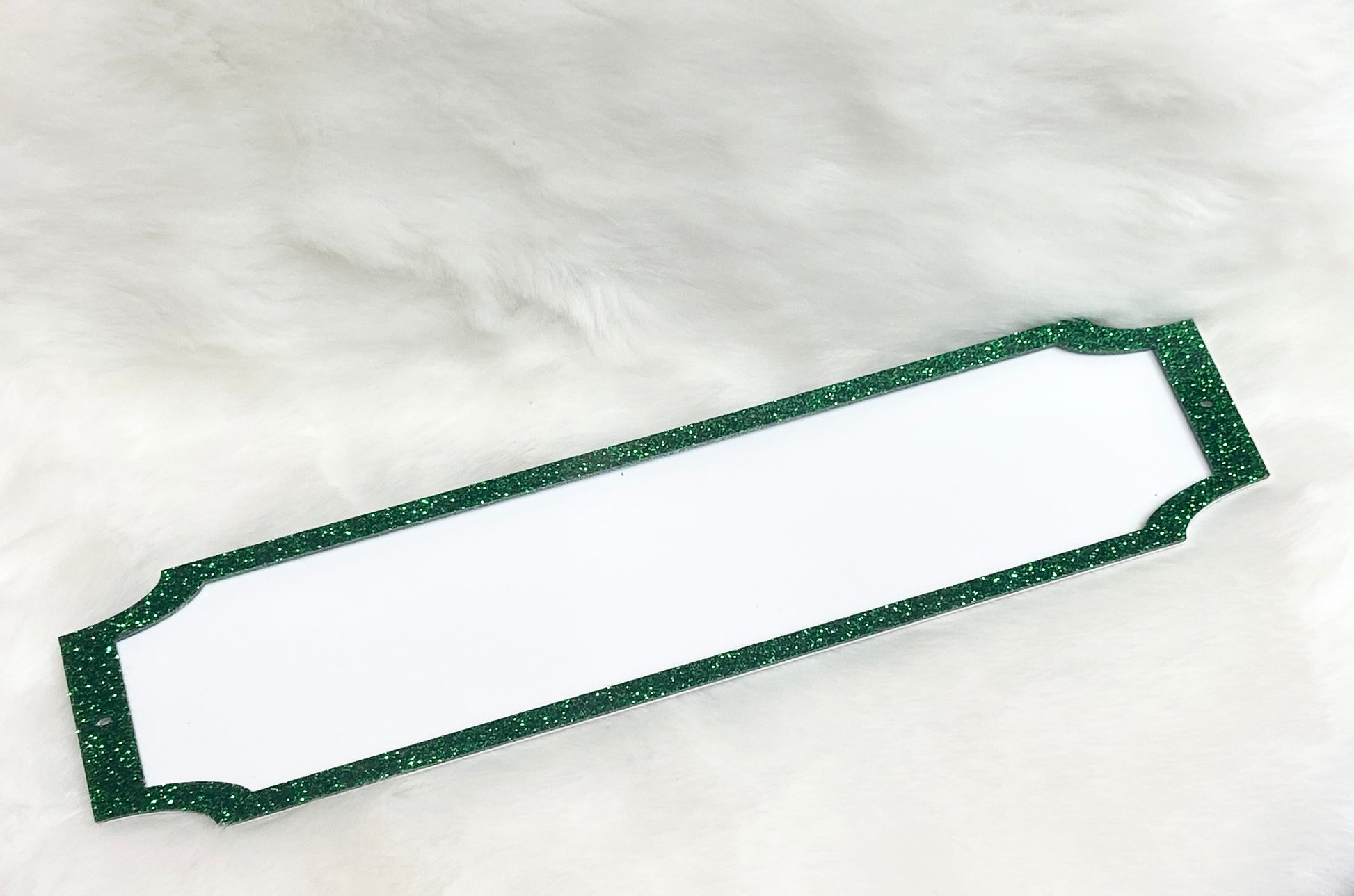 Glitter Acrylic House Sign – 3mm acrylic, measuring 35x8cm with a white sublimation-ready area and glitter trim for added sparkle.